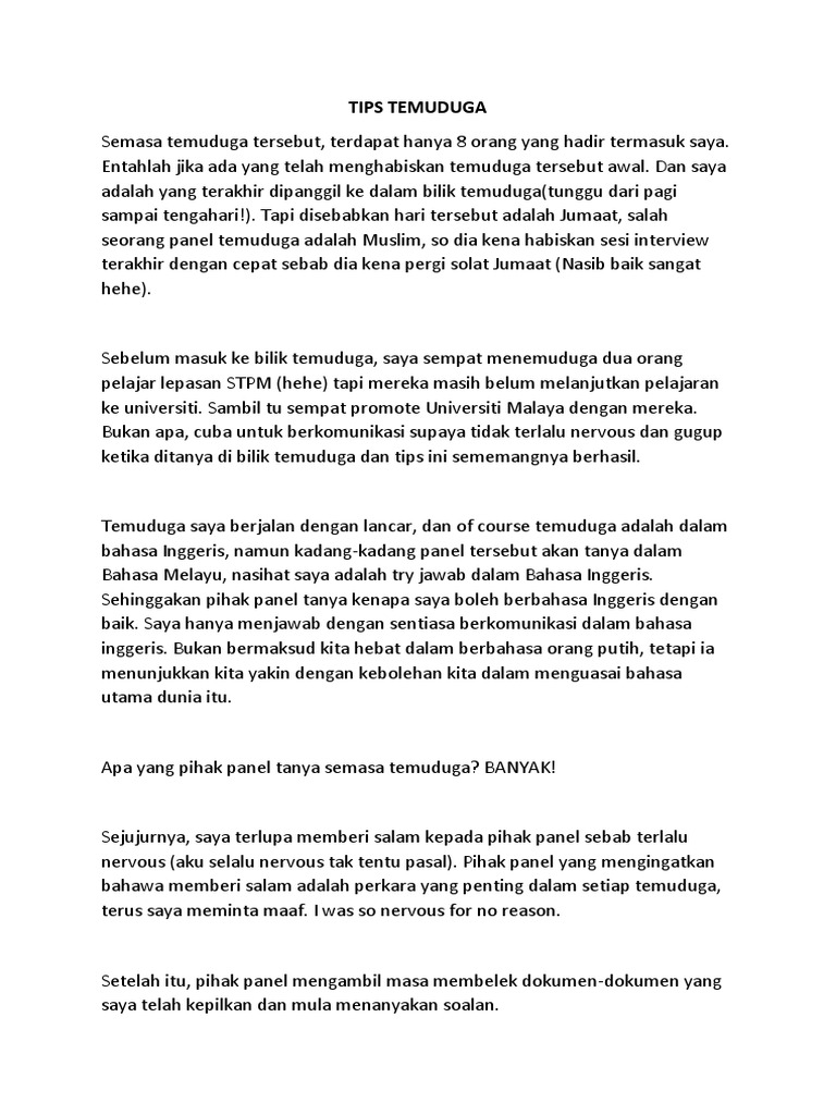 Jadi calon yang hadir temuduga diminta untuk berhati-hati dalam menjawab setiap soalan. Semoga ia menjadi panduan bagi anda. Surat ini juga diedarkan melalui email.